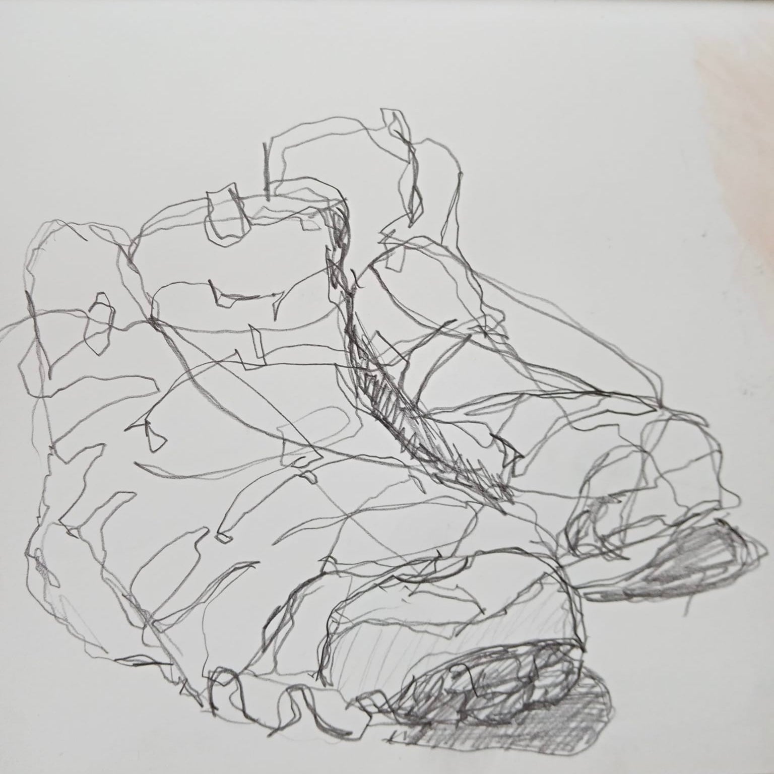 "Inspired by other participants continuous line drawings, I thought I'd give it a try. Micron pen, watercolour."