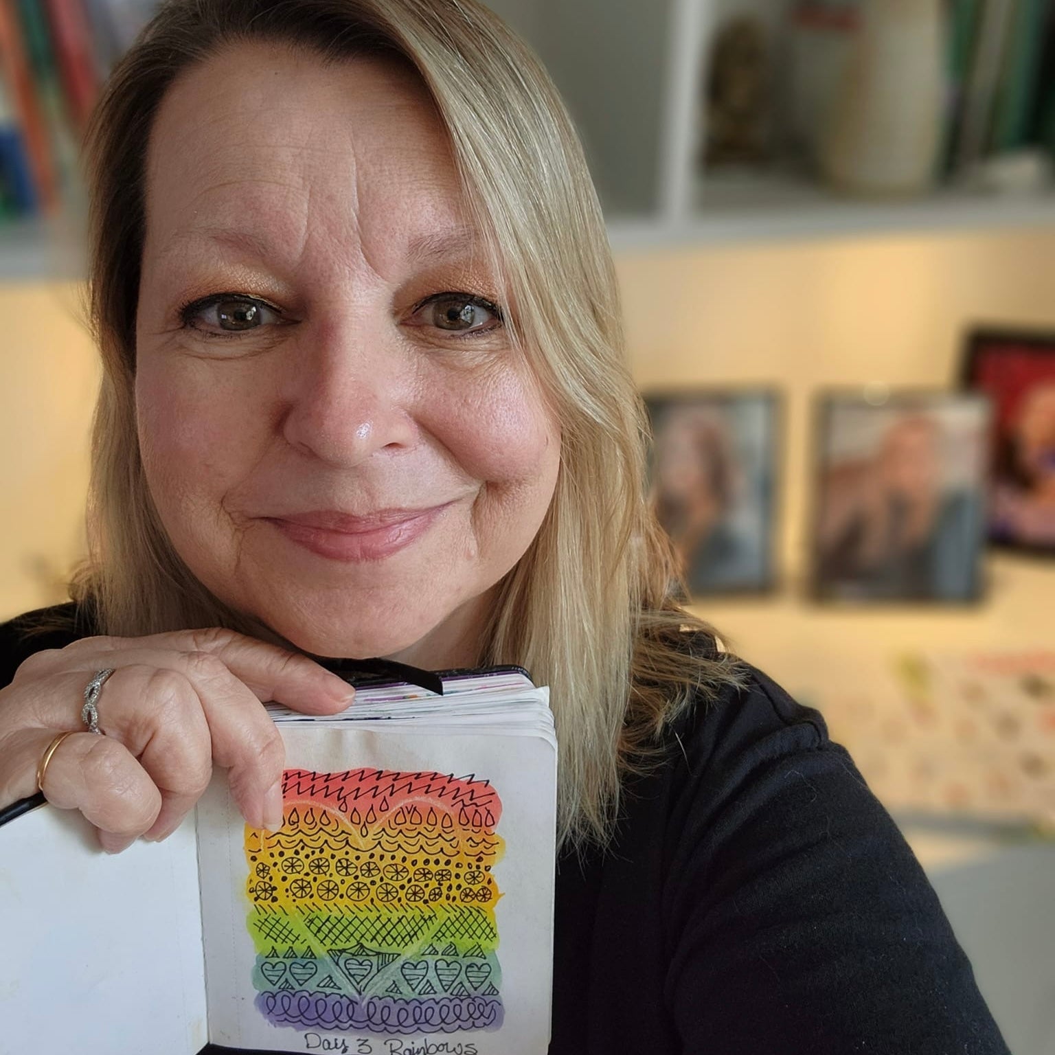 Kim worked in a small sketchbook throughout 2023. Here is Kim and her photo of her day 3: Rainbows sketch.