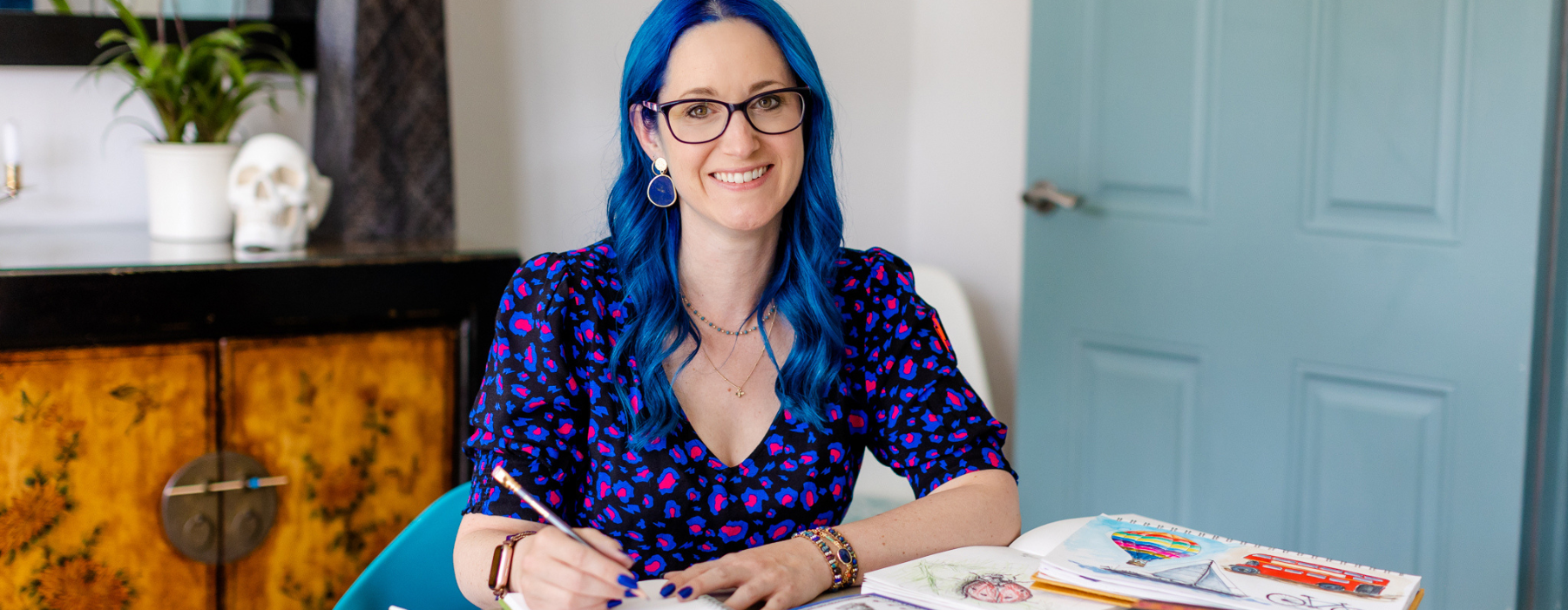 When I’m not teaching, running my pottery cafe in Woking, writing books about sketching, or talking about all things creative, I’m busy being a mama to my very strong-willed daughter, dancing Salsa, practicing yoga, or sewing my own clothes.